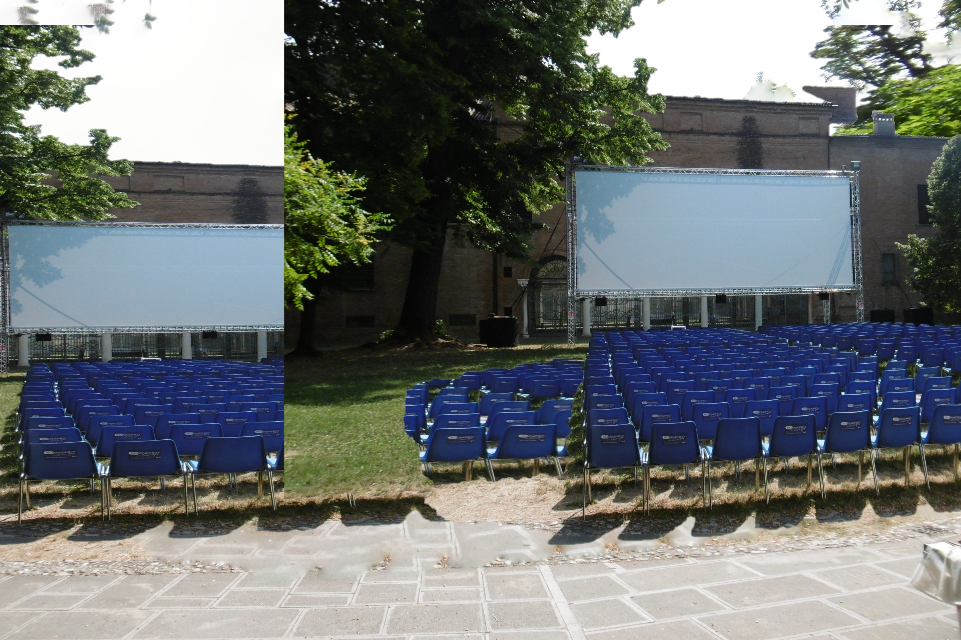 A vrai dire, il n’y a rien à regarder, sauf des croûtes usées sur des murs un peu traversés de failles encore discrètes, des meubles effondrés interdits d’accès par une corde rouge effilochée. Dehors, u faux cinéma de verdure, dédoublé par le soleil.