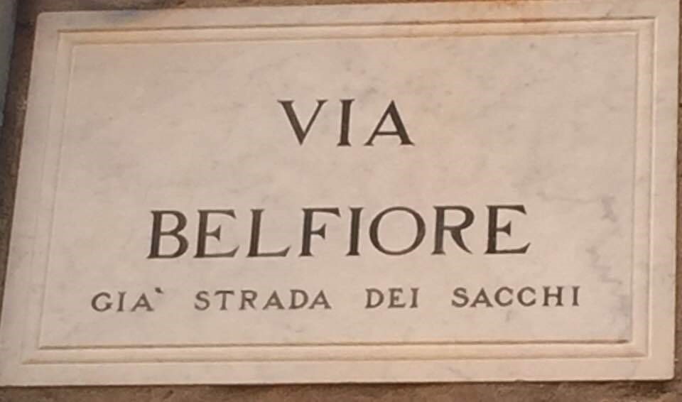 Sur les pavés des retours, lente progression vers la rumeur discrète du centre-ville touristique, je lis cinq panneaux superposés qui paraissaient indiquer, entre autres, la « maison de G. Bassani ». C’était le plus bas de tous : souillé de poussière par des passages anciens de pluie projetant la terre meuble de cette ruelle, et enrichi de graffitis dont un sexe masculin dessiné à la hâte- on n’ose écrire « main levée ».