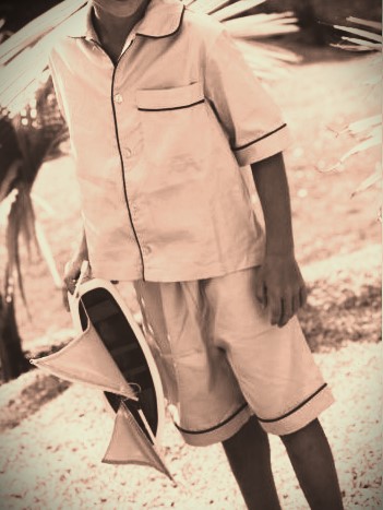 Bleu et blanc, rouge et vert, le pyjama (certes pas de lin blanc ça coûte trop cher, on n’avait pas d’argent, nous, seulement Die Pate, un peu davantage, voiture, couscous chez le Marocain)